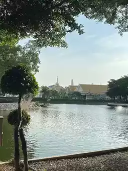 🍀Atmosphere inside the temple: peaceful, shady, with food shops and a place to sit by the pond.