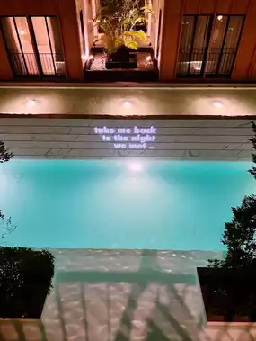 And then there’s the pool — a serene, leafy escape framed by greenery and thoughtfully designed lounging spaces. It almost felt like a secret garden hidden behind concrete walls, where time slows down and the chaos of the city fades into the background.