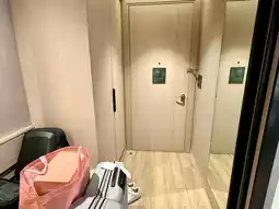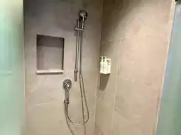 There was a partition for privacy when taking a shower. The shower gel and shampoo were fragrant.