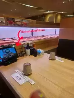 Food ordering system: Easy to use via tablet Food is served on the spot via a smart conveyor belt or you can pick it up from the rotating conveyor belt!