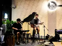 "Kaa-Nham" is a cozy little bar tucked away in Ying Charoen Square. Despite its size, it doesn't feel cramped. The bar offers a balcony view that gives off a rooftop vibe, making it a perfect spot to relax. They serve a variety of delicious drinks and food, and you can enjoy live music up close. The songs are great, and the singers are friendly and approachable.