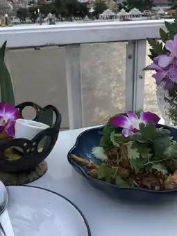 Riverside Zone: Front-most table with the closest view of Wat Arun. Minimum order of 1,500 baht is required.