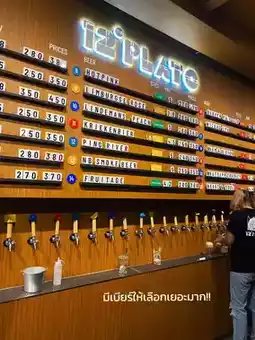 🍸 The shop is called 12 Plato Brewing. It is a restaurant that serves alcoholic beverages. For those who love Craft Beer, I highly recommend it because there are so many to choose from, up to 21 taps. The cute thing about the shop is that we can go to the bar and ask for a taste of every tap before choosing the one that we like the most. There are 2 sizes, a small glass and a large glass. The price is shown on the sign as seen.✨