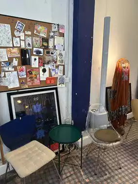 The interior of the café has a vintage feel mixed with local art. There are wooden tables, rattan chairs, books, dried flowers, and cute decorations that the owner has carefully arranged.