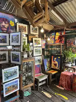 💞Reason for recommendation: Khlong Bang Luang Floating Market is an old community with many works of art to see, one of which is Baan S. Chitrakarn 2552, the owner of the shop who creates various works in the shop will sit and draw pictures in front of the shop and also accepts portrait drawings.