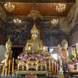 Commonly known as "Wat Paknam", this large temple is located in a relatively quiet area slightly southwest of Bangkok.