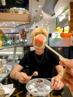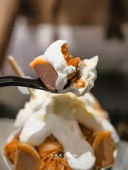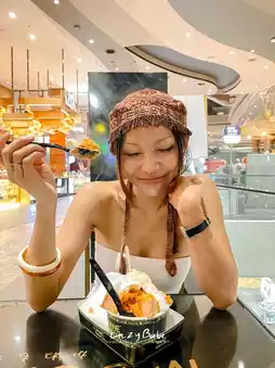 Sweet lovers 🍭 You will definitely love this because even though I am not a sweet person, I am still crazy about it. 🤩 The Thai tea bingsu menu is the best. It is very delicious, not too sweet. Served with Thai tea mochi ice cream, grass jelly, whipped cream, crushed ice, everything is perfect. Wow, I love it ✨ I highly recommend it ~ As for the chocolate fondue menu, my boyfriend really liked it. 🍫 You can choose 4 ice cream flavors. There are so many flavors to choose from. 😆 I love both. If you want to buy the regular ice cream, it is 29฿ per scoop, 4 scoops for 115฿, or if you want something special, 8 scoops for 229฿ and get 1 free scoop.