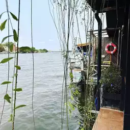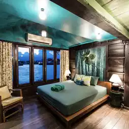 Loy La Long Hotel is a charming riverside accommodation located near Chinatown in Bangkok. Nestled between the N4 and N5 piers along the Chao Phraya River, this two-story teakwood building features seven uniquely themed rooms, each represented by a distinct color: green, black, yellow, white, blue, orange, and red. The hotel exudes a romantic and nostalgic atmosphere, set in a 30-year-old wooden house on the river. Guests can enjoy the shimmering reflections of lights on the water and breathtaking sunset views from their windows. The rooms are adorned with vintage wooden decor, antique Chinese-style bathing facilities, and low beds, all designed to offer an authentic riverside experience. Situated just one or two meters from the water, the hotel provides a truly unique and intimate connection to the river.