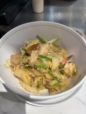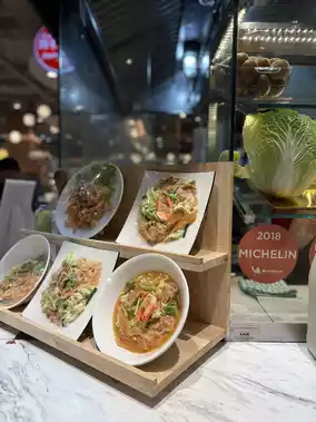 This suki restaurant does not only have suki, but also has turnip cake on the menu. The restaurant has both dry suki menus with pork/beef/mixed/chicken, both soup and dry. We ordered the dry mixed suki, the taste was delicious, stir-fried together very well, the vegetables were crispy, the meat was tender, the suki sauce was just right. The price is 125, it has also received the Micherin award, there are cool and comfortable seats to sit and eat.