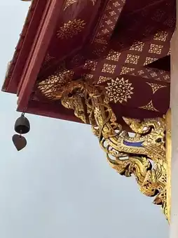 ✨️The pediment has windows and no Naga Sadung. There are both internal and external checkpoints in the ordination hall. The inside is in the middle of the wall, while the outside is at the corner. The supports are vines that look intricately connected. The roof tiles are only one color.