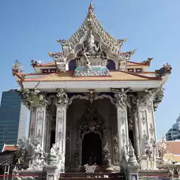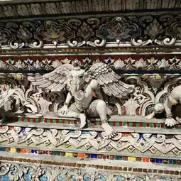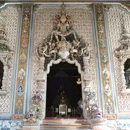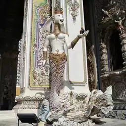 This temple is outstanding with contemporary art. There are statues of gods from all over the world for friends to come and pray and see the beauty of the magnificent animal statues in literature. The statues here are decorated with Benjarong porcelain, making them very eye-catching and beautiful.