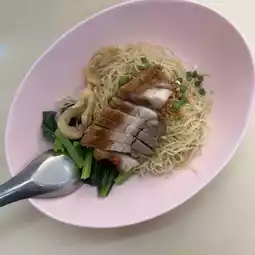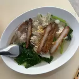 Hello, I had the opportunity to go to Bangkok to attend the GOT7 concert at Rajamangala Stadium. I looked for a place to eat and randomly found this shop before entering the concert, "Double Dragon Noodle Shop". It turned out that it was very delicious. The shop makes its own noodles without preservatives. They make them fresh every day. Their noodles are chewy and soft. They are small but delicious. The crispy pork rice is also delicious. I recommend ordering it 👍
