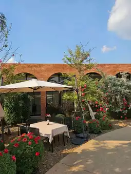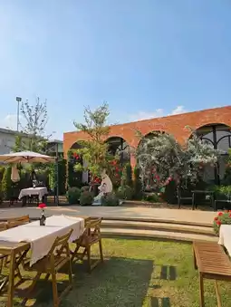 A cafe in the Krungthep Kreetha area. This is both a cafe and a restaurant. The shop has a beautiful design, decorated with orange bricks. It has a very large area that can accommodate customers to the fullest, so you don't have to worry about being crowded. There are both indoor and outdoor areas. Most importantly, this place is also pet-friendly.