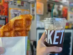 And for those who don't drink coffee, there are also strong-tasting cocoa, Thai tea, and green tea, as well as delicious croffles to try.