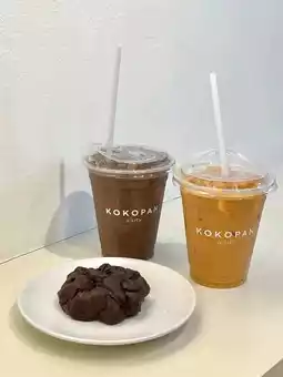 #Review Cafe KOKOPAN The atmosphere in the shop gives a feeling like being in Japan in a warm wooden 𝙃𝙤𝙢𝙞𝙚 style. There are both croissants, donuts and drinks. Order Croffle, the dough is good, delicious, fragrant. We ordered Cookie 'n caramel Croffle, a piece that can be eaten by one person, soft, crunchy, contrasting well with Fresh milk cream & jam donut, delicious. For drinks, we ordered Ichigo milk, strawberry milk, not too sweet, like this, and Premium Matcha Latte.