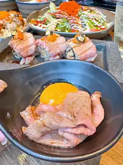 Tama roll has a ridiculous amount of ingredients, five or six ingredients such as goose liver and eel stacked together, one bite is super satisfying!