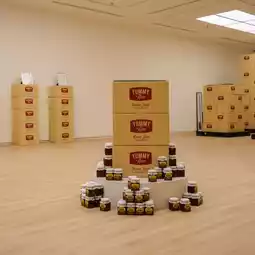 In the exhibition, we will see expired rose jam displayed as a product that is still being offered, only at a cheaper price, while its meaning is still full.