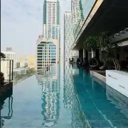 . The hotel's swimming pool is another highlight of the hotel. It is an infinity pool with a beautiful city view. It is guaranteed to take great photos. You can see the Mahanakhon building.