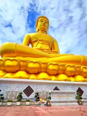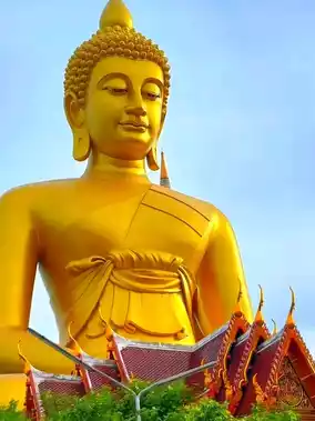 ✨ A towering 69-meter golden Buddha (visible from afar!)