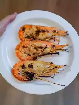 🦐 Fresh seafood, including large river prawns, scallops, squid.