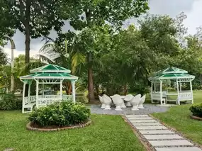 Inside the park, there is a monument to the sunken queen, a glass pavilion, a trumpet pavilion, an octagonal pavilion, a pavilion of the golden teak goddess, a metal tray fountain, etc.