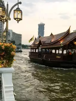 Getting to the hotel is both easy and scenic. Take the BTS Skytrain to Saphan Taksin Station, then hop on the hotel’s elegant complimentary boat shuttle, which sails gracefully along the river to the hotel’s private pier. Taxis and private cars can also access the hotel directly via Charoenkrung Road.