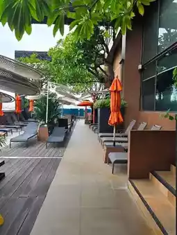 The rooms feature large beds that are perfectly comfortable for two people. Inside the room, there is a sofa and a table for dining. The bathroom includes a bathtub, and on the 11th floor, there is an infinity pool with a depth of approximately 160cm. The hotel is conveniently located near the MRT, with a 7-Eleven and Lotus Supermarket nearby, making shopping very convenient. The environment is beautiful and pleasant, and I really like it here. The food served here is also excellent and truly delicious. If you visit, don't miss out—make sure to try it! Highly recommended!