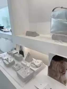 The shop is decorated in a minimalist style, white and gray tones, with both indoor and outdoor areas that are spacious, with a beautiful garden and a small pond, giving a sense of peace and relaxation.