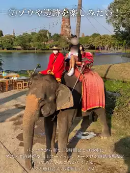 ⑦ I want to see the floating market, ruins, and ride an elephant in the suburbs!