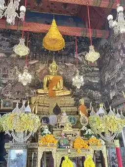 Upon arrival at Wat Arun, it is recommended to turn right and pay respects to the principal Buddha image in the ordination hall for blessings. Afterward, explore the iconic white prang of Wat Arun. A must-see highlight is the two small pavilions. In the first pavilion on the left, you’ll find a sacred relic of the Buddha. Paying respects here is believed to bring good fortune. Opposite the Buddha image in this pavilion is the royal bed of King Rama II (King Buddha Loetla Nabhalai). It is suggested to pass under the royal bed for blessings and good luck.