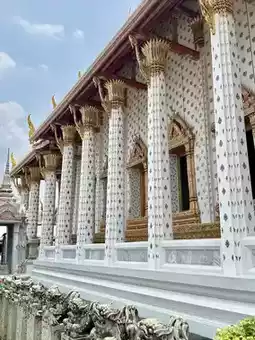 Wat Arun Ratchawararam, also known as Wat Chaeng, has been a significant temple of Bangkok since the Rattanakosin era. Its most striking feature is the magnificent white prang (spire), which looks stunning both during the day and at night, offering a unique experience depending on the time of your visit. Getting there is very convenient; simply take a ferry from Tha Tien Pier, which costs only 5 baht per trip and takes less than 2 minutes to cross the river.