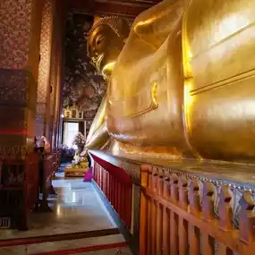 A spiritual and cultural icon! Marvel at the 46-meter-long Reclining Buddha, adorned in gold leaf, and immerse yourself in the serene blend of Buddhist spirituality and Thai heritage. 🙏 The intricate murals and peaceful atmosphere make this a must-visit for every traveler!
