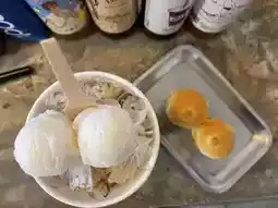 “Freshly baked milk bread stuffed with homemade coconut ice cream. Not too sweet. The most delicious.” – Review from Wongnai
