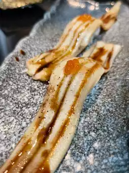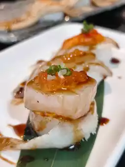 🍣 Engawa Truffle Sauce Sushi Sushi topped with engawa truffle sauce, mellow aroma