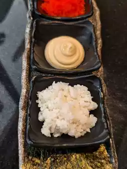 🍣 Engawa Mentai Spicy Sushi, sushi with Engawa in spicy mentai sauce Spicy