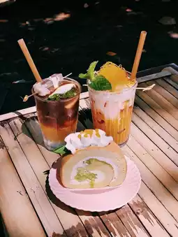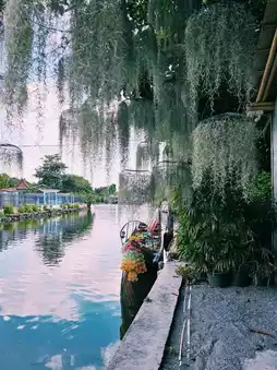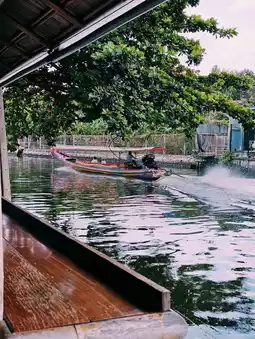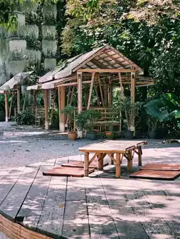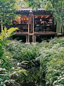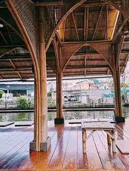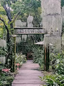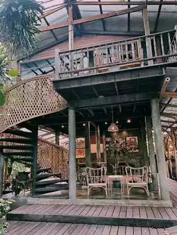 A cozy cafe near Bangkok in the Rama 2 area, surrounded by a lush garden (formerly a lychee orchard). Perfect for nature lovers who enjoy a serene and cool atmosphere. The cafe is divided into two zones: a restaurant located in the middle of the garden and a cafe by the water. Both zones feature bamboo materials in their design, creating a pleasant, shaded, and beautiful ambiance—ideal for relaxing.