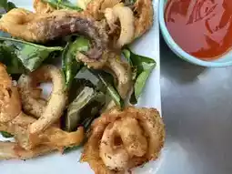 • Deep-fried sun-dried beef, oh my, it's so awesome! The fried beef is soft and the fried sticky sauce is crispy. Dip with jaew for the best taste
