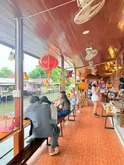 If you don’t want to walk, you can take a tuk-tuk or call a Grab after exiting the station and tell the driver to go to "Khlong BangLuang Floating Market". The ride is short and you can reach your destination quickly.