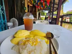 📝 Recommended menu: Mango Sticky Rice with Nam Dok Mai & Ok Rong mangoes; Sticky Rice with Dried Fish Topping; Sticky Rice with Custard Topping