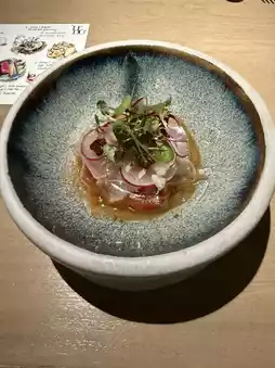Located near the BTS Chong Nonsi station, Le Du is a Thai cuisine restaurant that has consistently earned a Michelin one-star rating. You can easily book a dining slot online, and reservations are not too difficult to secure. The staff at the restaurant are very friendly, and each dish is accompanied by a detailed explanation. The ceiling decorations are stunning, featuring small glass bottles filled with spices themed around each season.