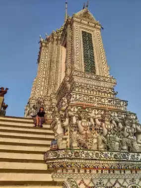 ✔ Climb the Central Prang – Scale the steep steps for breathtaking views of the Chao Phraya River and Bangkok skyline.