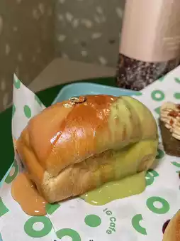 Don't miss the new menu, 2-colored salt bread with custard 🍞 It's so good. The bread is soft, juicy with butter, slightly salty, eaten with rich, sweet custard, both are delicious. In the blink of an eye, it was all gone.