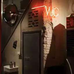 This local brand was founded by four local boys, and the space is a renovated old building that seamlessly blends modern trends into the narrow alleys. It's hard to miss this spot in the small lanes. The shop itself is compact, with only a few seats, and its dark and orange tones highlight its edgy and stylish vibe. The back wall features reflective lettering paired with red spring couplets, creating a striking yet harmonious contrast.