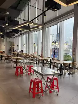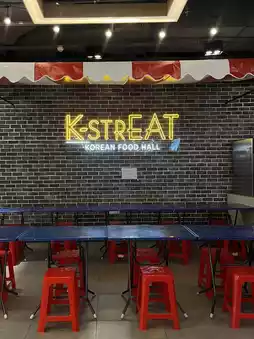 K-StrEAT is decorated in authentic Korean style, complete with K-POP neon signs and an ambiance that makes you feel like you're strolling through Seoul. Seating options include indoor areas and window-side spots, ideal for relaxing with friends or family.
