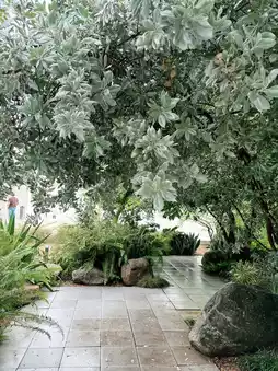 ✨ The shop is divided into two zones: an air-conditioned indoor zone decorated with soft wood furniture mixed with exposed concrete, and an outdoor zone with tables under the shade of trees, shady and quiet. It is an area suitable for both working alone and chatting comfortably with friends.