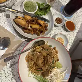 Usually, Pad Thai is served with a lot of shrimp, but the pork pad Thai here had a harmonious combination of rich and chewy pork and noodles. The slightly sweet sauce, bean sprouts, peanuts, and lime went well together, so the flavor was alive, and it wasn't greasy, so I enjoyed it until the end.