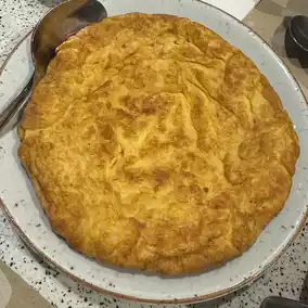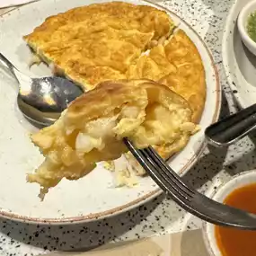 A typical Thai omelet with a moist inside and slightly crispy outside. It has a good flavor even without any other ingredients, and it goes really well with rice. It was simple but had a high level of perfection.