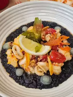 ✨ Pane da antipasto Bread served with olive oil and black pepper for extra deliciousness ✨ Deep-Fried Mozzarella Sticks (฿240) Stretchy cheese, crispy on the outside, soft on the inside! ✨ Truffle and Mushroom Soup (฿280) Fragrant truffle mushroom soup, smooth texture, soaked in cheese! ✨ Tagliatelle Sausage and Mushrooms (฿340) Flat pasta in a special cream sauce ✨ Squid Ink Risotto (฿390) Black squid ink risotto with a strong seafood aroma ✨ Grilled Pork Chop with Smoked Scamorza (฿380) Grilled pork chop with melt-in-your-mouth scamorza cheese ✨ Seafood Pizza (฿390) Fresh seafood pizza with thin and crispy dough