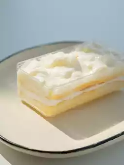 Description: A moist and fluffy cake infused with the tropical flavor of coconut, topped with a light coconut cream.