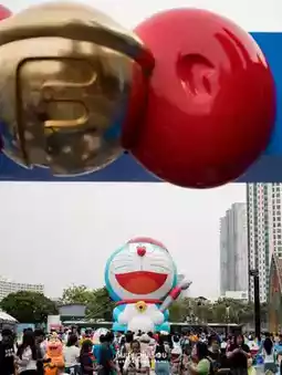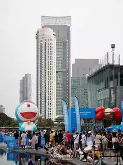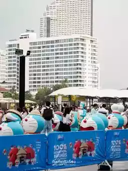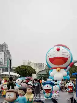 #Rainy season attractions Stopped by ICONSIAM and happened to see the Doraemon exhibition. We only went to the outdoor exhibition area by the Chao Phraya River, didn't go into the inside area where you have to buy a ticket (or if you want to take a close-up photo with Doraemon, you can pay the entrance fee of 199 baht per person).